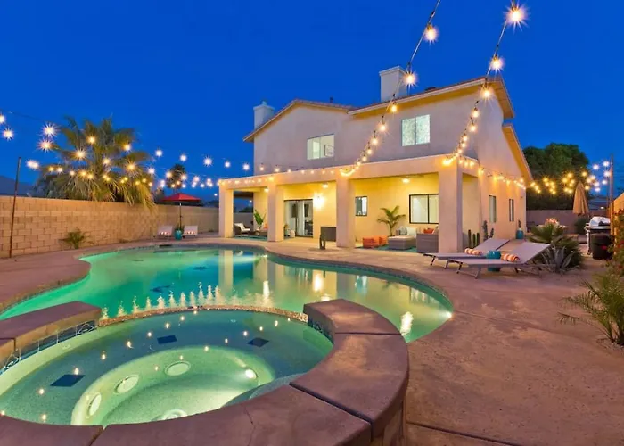 Neben den Annehmlichkeiten für Selbstversorger wie einer kompletten Küche bietet diese Unterkunft auch eine Essecke. Die Küche bietet auch einen Wasserkocher, einen Kühlschrank und einen Herd. Die Villa ist auch vom 30 km entfernten Flughafen Palm Springs aus leicht erreichbar.